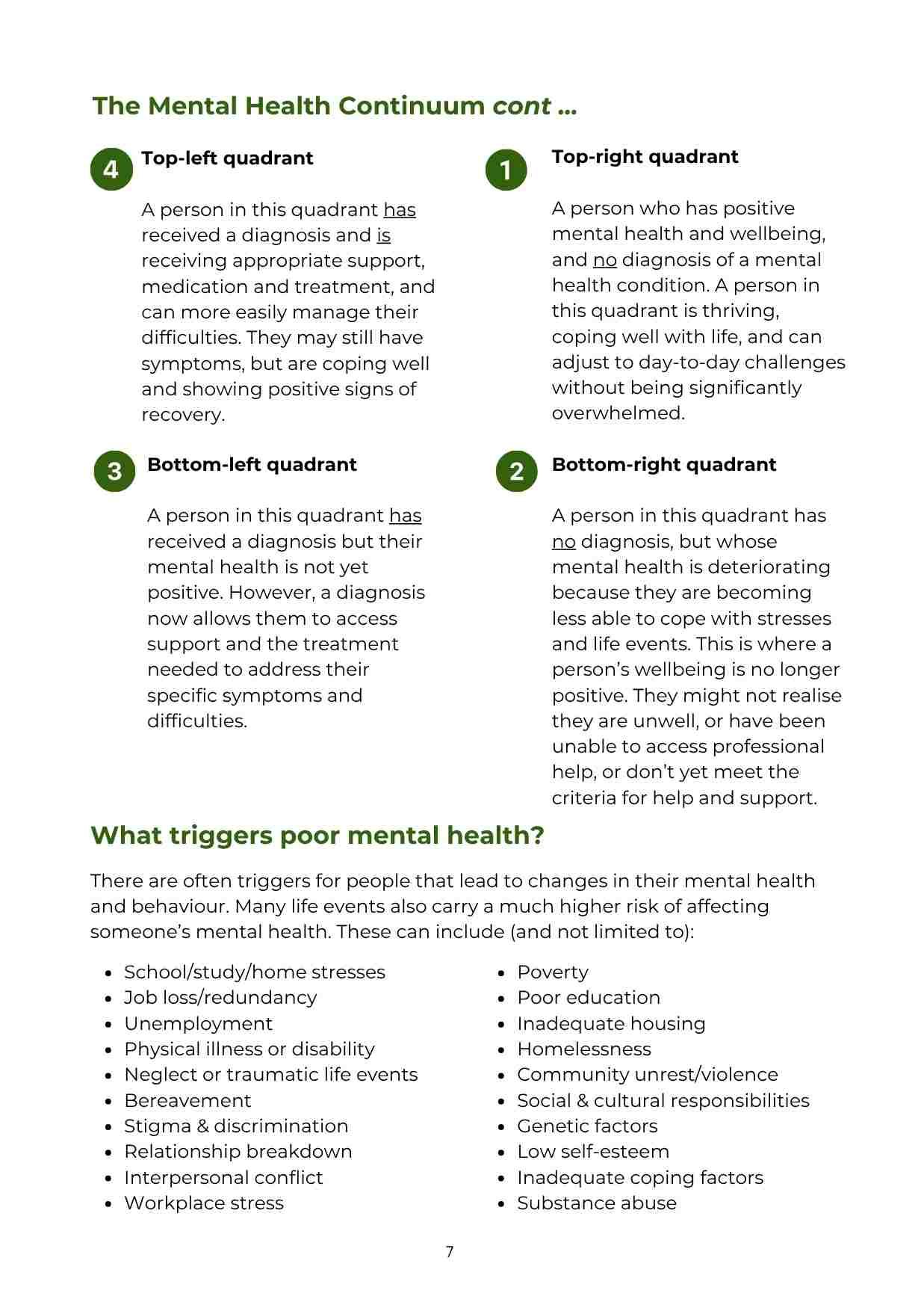 Develop your knowledge and understanding of mental health. Click on the links, starting from the top. You can click through to the next page from each page.
